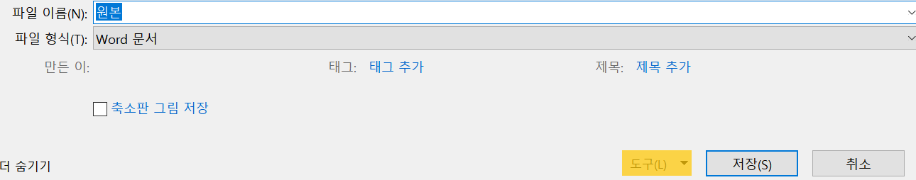파일[탭] -> 다른 이름으로 저장 -> 찾아보기