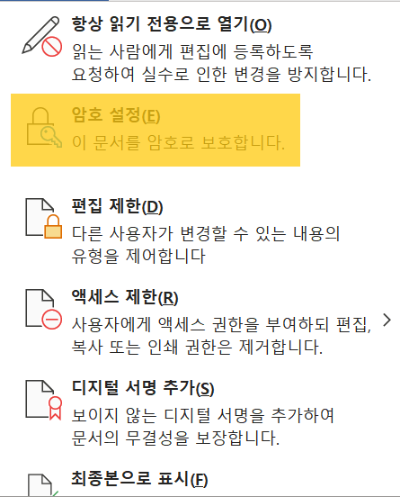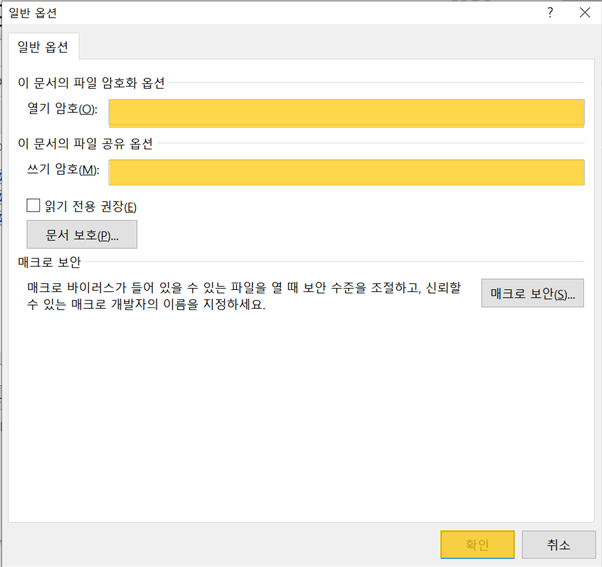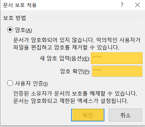 * 쓰기 암호(M) : 문서 편집을 제한할 수 있는 암호