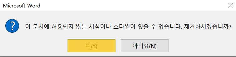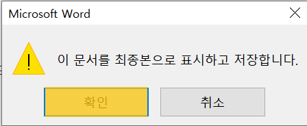 상단에 이 워드 문서는 최종본이라는 노란색 알림 메시지가 출력된다.