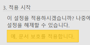 (3.적용 시작 에서) 예, 문서 보호를 적용합니다. 항목 체크