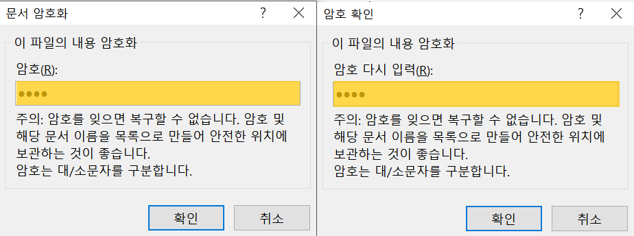 (파일을 다시 열면 암호를 입력하라는 메시지가 출력됨)