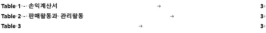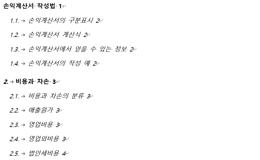 목차 필드는 본문의 제목 텍스트나 페이지 번호가 바뀌면 자동으로 업데이트 된다.