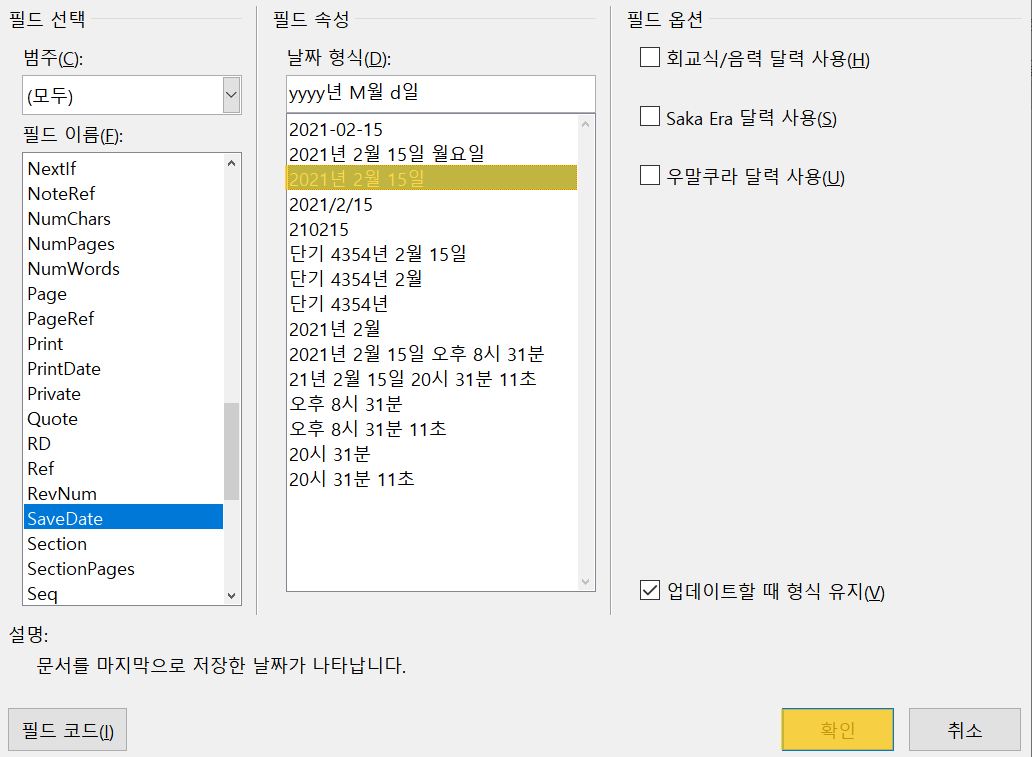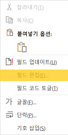 문서에 삽입 되어있는 필드를 편집이 가능하다.