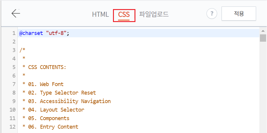 다음으로 Html 편집에서 CSS 항목을 눌러줍시다.