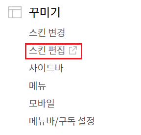 블로그 관리의 꾸미기 탭에서 스킨 편집으로 들어갑니다.