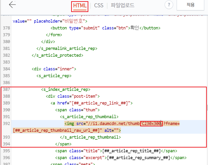 혹시 저와 다를 수 도 있는데 그때는, ctrl+f 로 .list-type-thumbnail 를 검색하신 다음에 수정하시면 됩니다.