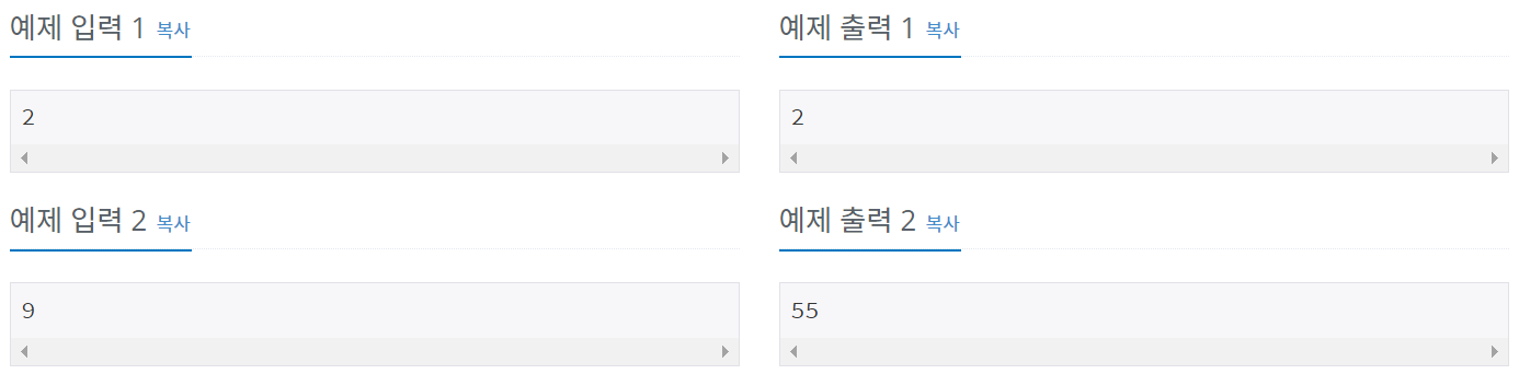 2×n 크기의 직사각형을 1×2, 2×1 타일로 채우는 방법의 수를 구하는 프로그램을 작성하시오.