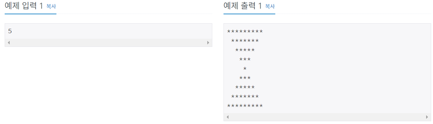 첫째 줄부터 2×N-1번째 줄까지 차례대로 별을 출력한다.