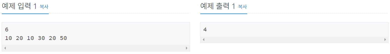 둘째 줄에는 수열 A를 이루고 있는 Ai가 주어진다. (1 ≤ Ai ≤ 1,000)