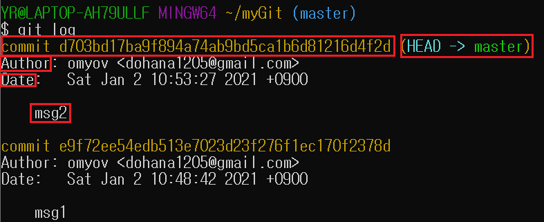 git log 명령을 이용하면, 지금까지 커밋했던 기록을 확인이 가능하다.