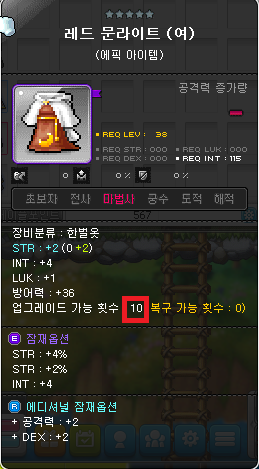 저는 "LV38 "레드 문라이트(여)" 한벌옷 의 잠재옵션을