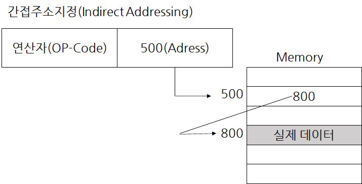 명령어의 주소 부분으로 지정한 기억 장소의 내용이 실제 데이터가 있는 곳의 주소로 사용되는 방식입니다.