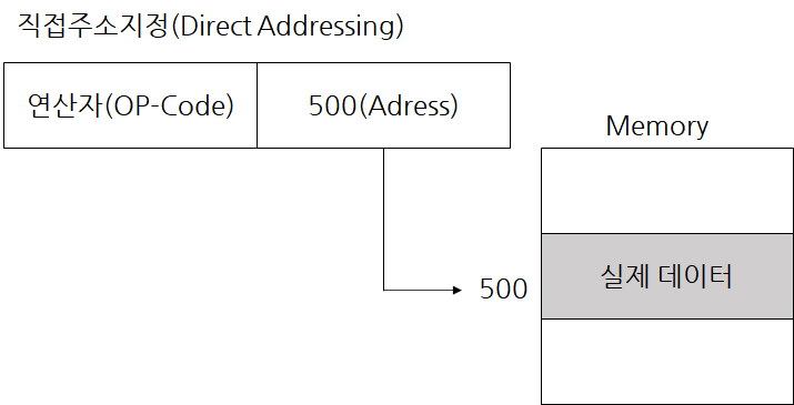 명령어 주소 부분에 있는 값이 실제 데이터가 있는 주기억 장치 내의 주소를 가리킵니다.